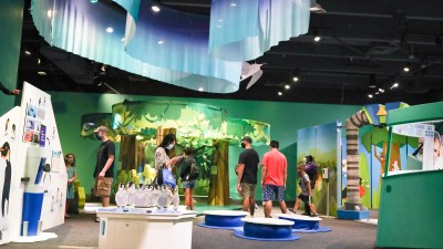 JERSEY CITY, NEW JERSEY – SEPTEMBER 04: Families explore the many exhibits at Liberty Science Center while being socially distant on September 04, 2020 in Jersey City, New Jersey. The fourth phase of businesses reopening in the state allows outdoor arts and entertainment, sporting events without fans, and media production. (Photo by Arturo Holmes/Getty Images) -