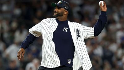 NEW YORK, NEW YORK – OCTOBER 07: Former New York Yankee CC Sabathia throws the ceremonial first pitch before the game between the New York Yankees and the Toronto Blue Jays in game three of the American League Division Series at Yankee Stadium on October 07, 2025 in the Bronx borough of New York City. (Photo by Al Bello/Getty Images) (Photo by Al Bello/Getty Images)