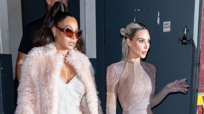 NEW YORK, NEW YORK – SEPTEMBER 09: La La Anthony and Kim Kardashian are seen leaving the FENDI Spring Summer 2023 Fashion Show and the celebration of FENDI’s 25th Anniversary of the Baguette at Hammerstein Ballroom during New York Fashion Week on September 09, 2022 in New York City. (Photo by Gilbert Carrasquillo/GC Images)