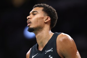 SAN ANTONIO, TEXAS – DECEMBER 29: Victor Wembanyama #1 of the San Antonio Spurs reacts during the game against the Cleveland Cavaliers at Frost Bank Center on December 29, 2025 in San Antonio, Texas. (Photo by Kenneth Richmond/Getty Images)