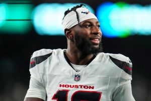 EAST RUTHERFORD, NJ – OCTOBER 31: Kris Boyd #17 of the Houston Texans walks across the field during an NFL football game against the New York Jets at MetLife Stadium on October 31, 2024 in East Rutherford, New Jersey. (Photo by Cooper Neill/Getty Images)