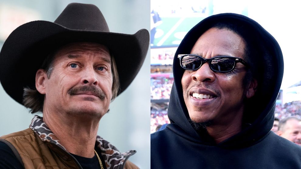 The Detroit native, who headlined Turning Point USA’s show that took place at the same time as the Halftime Show, took a shot at Jay-Z.