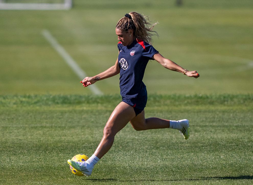 CARSON, CA – JANUARY 20: Trinity Rodman of the United States crosses the ball during USWNT training at Dignity Health Sports Park on January 20, 2026 in Carson, California. (Photo by Brad Smith/ISI Photos/USSF/Getty Images)